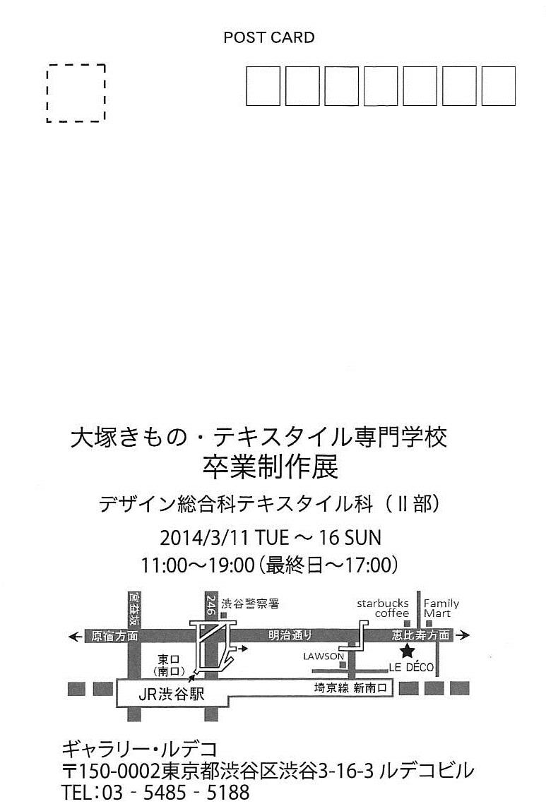 大塚きもの・テキスタイル専門学校 卒業制作展 デザイン総合科テキスタイル科(Ⅱ部) LE DECO 2 / 開催終了 大塚きもの・テキスタイル専門学校 卒業制作展 デザイン総合科テキスタイル科(Ⅱ部) 会期…2014年3月11日(火)~16日(日) 展示内容…テキスタイル