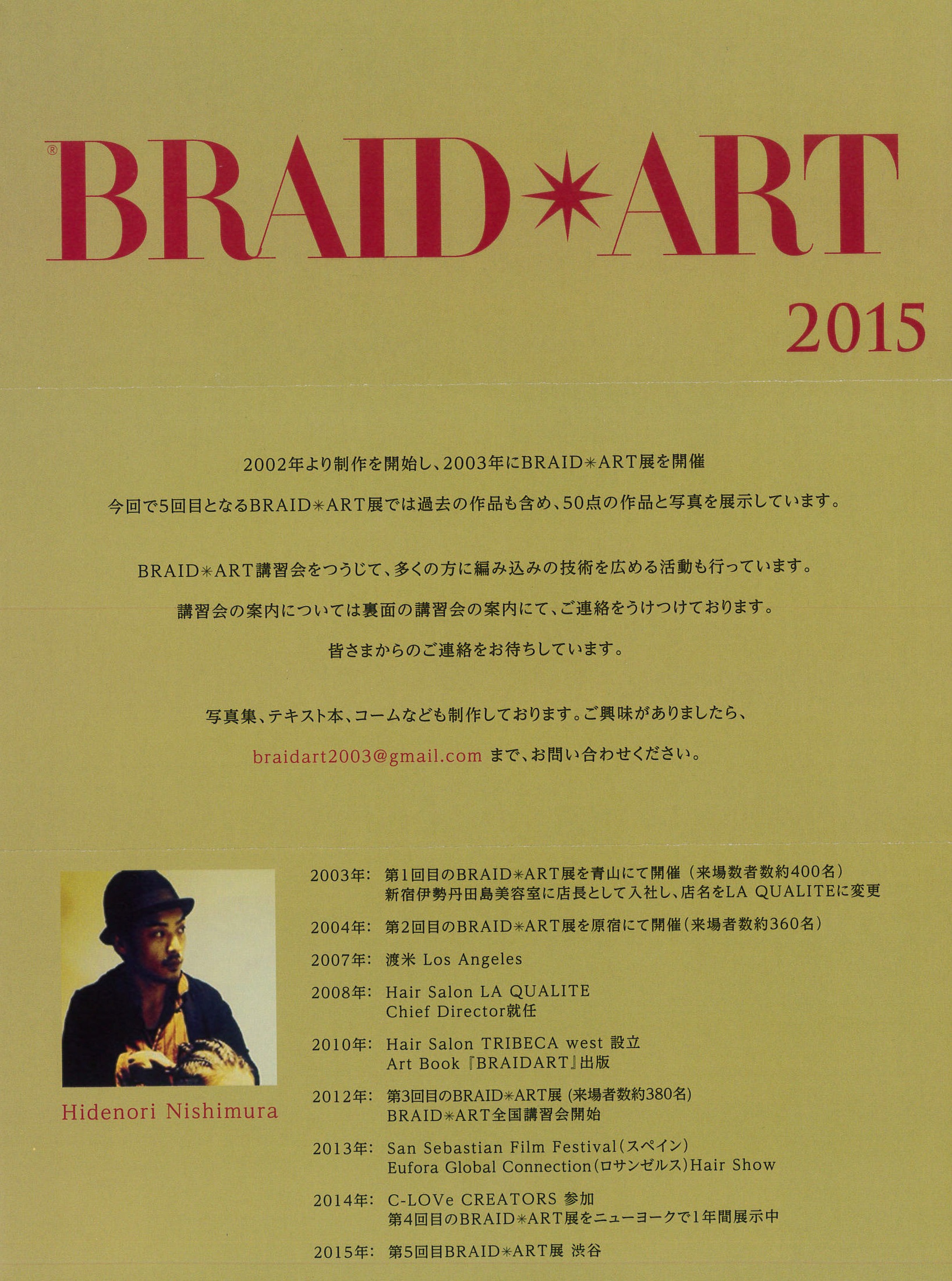 『BRAID ART』HIDENORI NISHIMURA LE DECO 2 / 開催終了 『BRAID ART』HIDENORI NISHIMURA 会期…2015年7月1日(水)~7月5日(日) 開催時間…11:00~19:00 ※最終日は17時まで