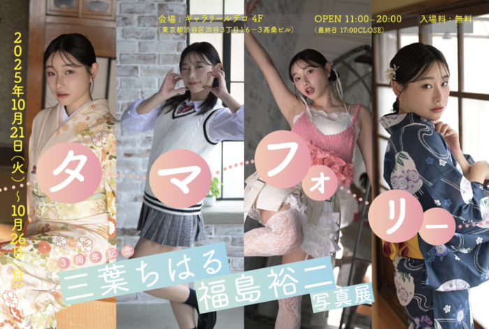 三葉ちはる 3周年記念 『タマフォーリー』 LE DECO 4 / 開催終了 三葉ちはる 福島裕二 写真展 『タマフォーリー』 会期:2025年10月21日(火)〜10月26日(日) 時間:11:00〜20:00(最終日は17:00まで) 入場料:無料