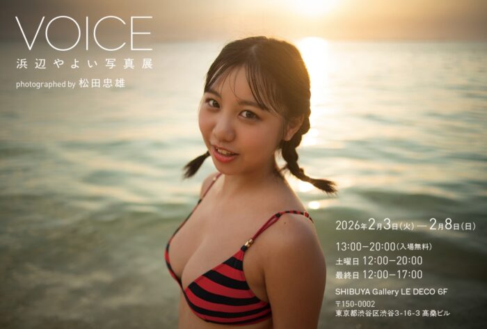 21 歳の新⼈⼥優・浜辺やよいが⾒せる等⾝⼤の美しさと儚さ。ファースト写真集(2026年1⽉・徳間書店)の刊⾏を記念して、もっと多くの⼈に知ってほしい彼⼥の魅⼒を切り取った写真展「VOICE」を開催いたします。